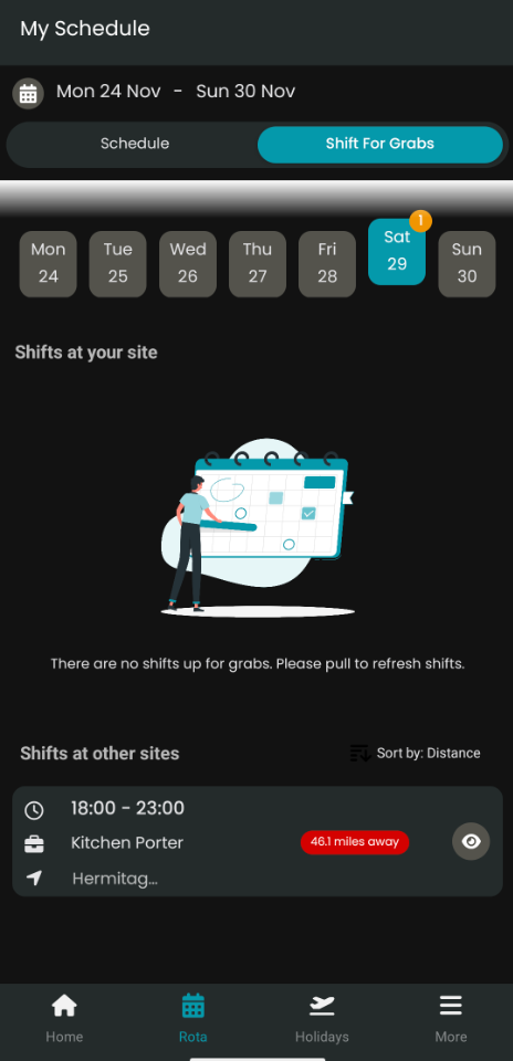 A: Yes, if your organisation has enabled Multi-Site Shift 4 Grabs, you can view and claim eligible shifts at non home locations, if offered by a Manager.