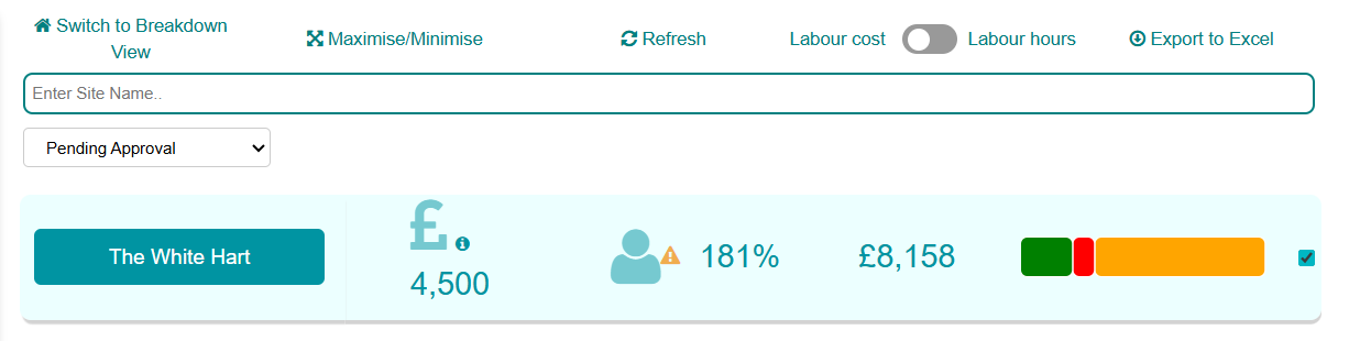 Level 4 or above users can filter the Area Manager Dashboard by Rotas Pending Approval